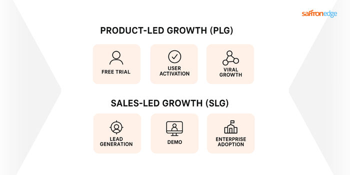 Product-Led Growth (PLG): users try the product directly via self-service.