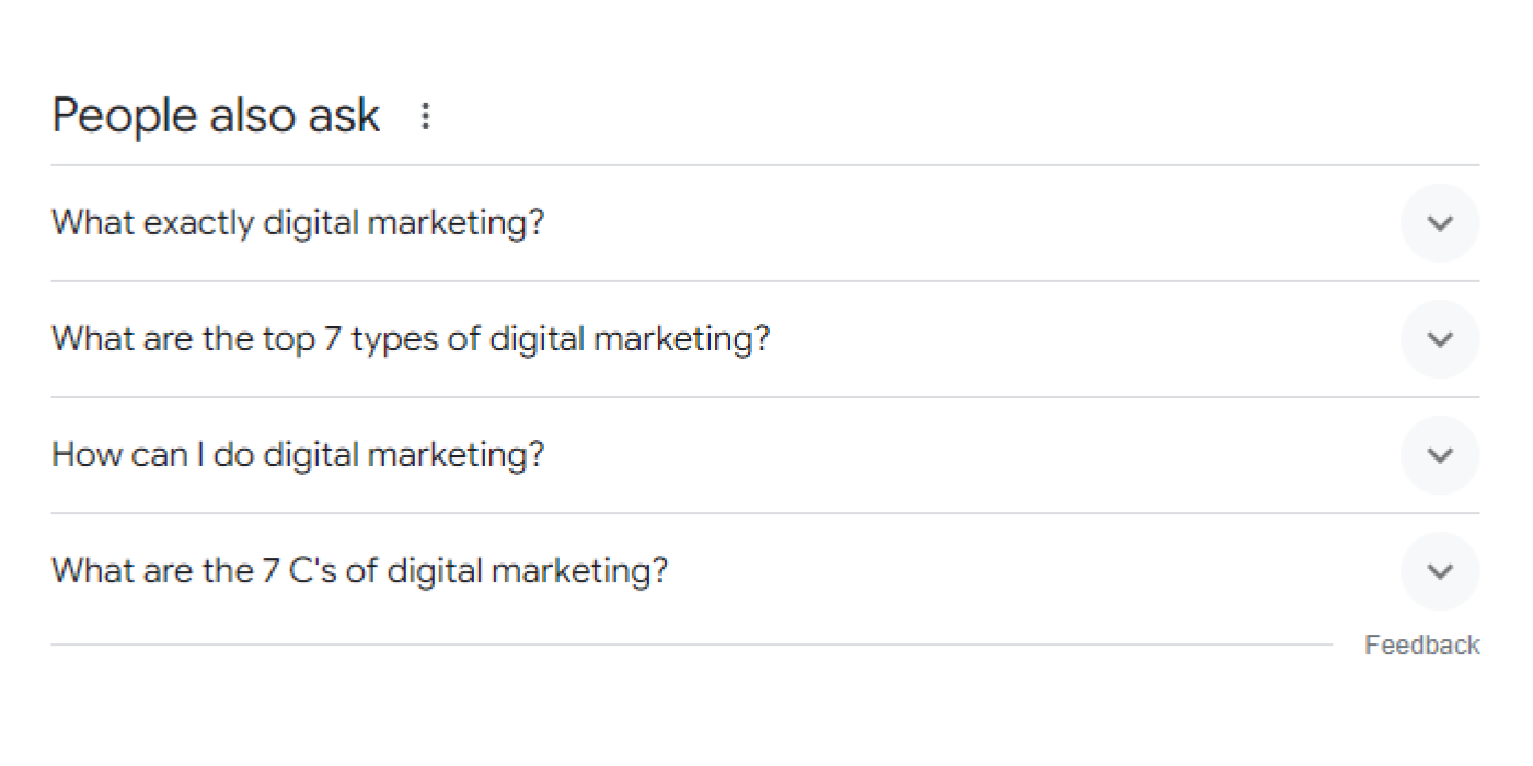 For example, if you search for digital marketing online, you'll see a box called "People Also Ask."